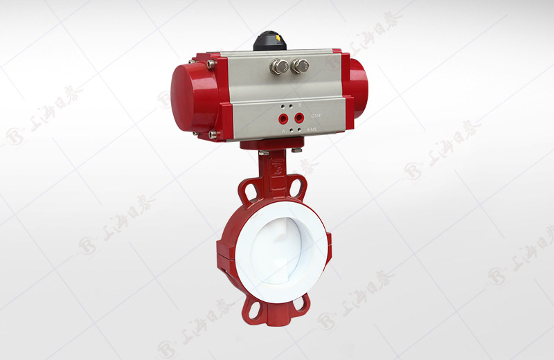气动衬氟蝶阀采用带有球形密封表面的衬聚四氟乙烯包衬蝶板,气动衬氟蝶阀操作轻便,严密的密封性能,延长了使用寿命;可作快速切断或调节流量之用。气动衬四氟蝶阀适用于要求可靠密封和良好调节特性的场合。阀体采用分体式,阀轴两端的密封由蝶板与阀座之间的旋转基面加氟橡胶来控制;保证阀轴不与腔内流体介质接触。气动衬四氟蝶阀广泛适用于各种不同类型工业管道中液体和气体(包括蒸气)的输送,有严重腐蚀性介质的使用场合,如:硫酸、氢氟酸、磷酸、氯气、强碱、王水等具有强腐蚀性的介质。
